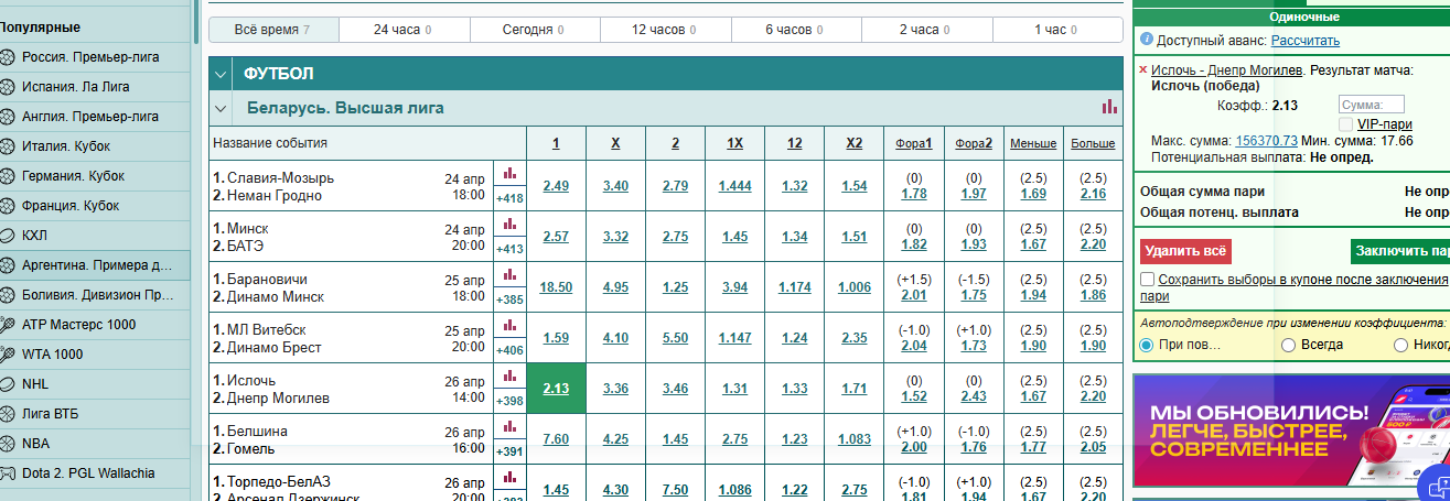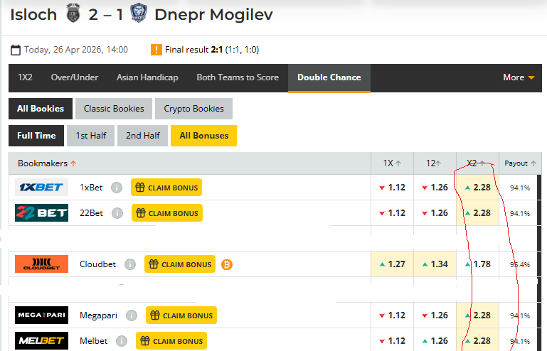 Вышка. Беларусь. 26 апреля матч. 15:00. Ислочь - Днепр могилев п1