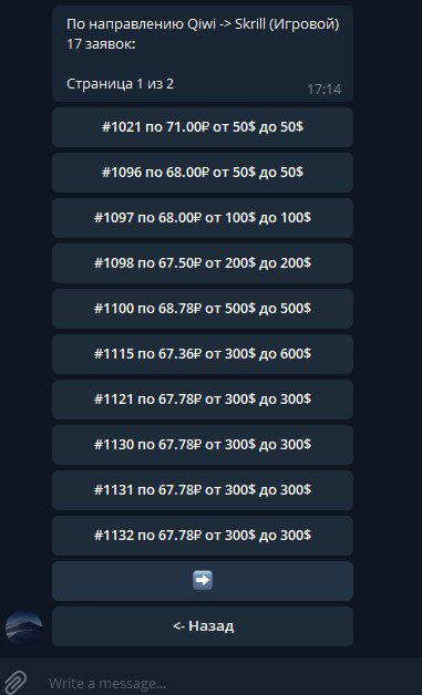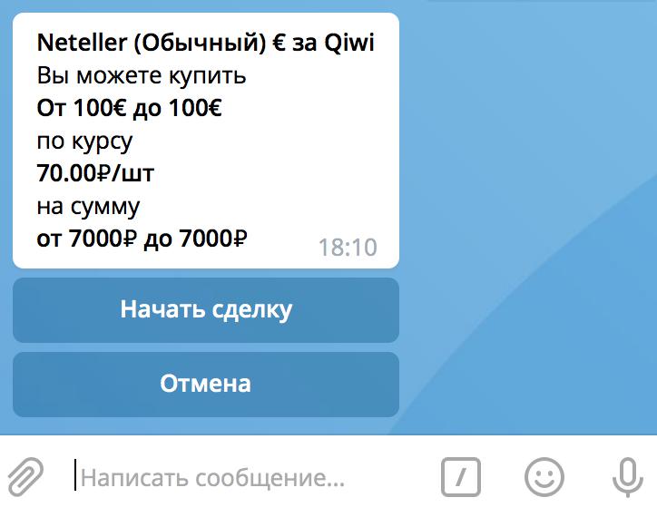Торговая площадка в телеграмм по обмену Skrill/Neteller, (с) под контролем операторов.
