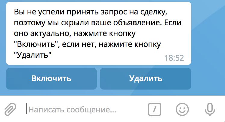 3) Внесено дополнение - при поступлении запроса на обмен если вы нажимаете отклонить запросто - то ваша заявка удаляемся, если вы не успеваете принять запрос в течении 2 минут, то ваша заявка скрывается и вам будет доступно вот такое сообщение: